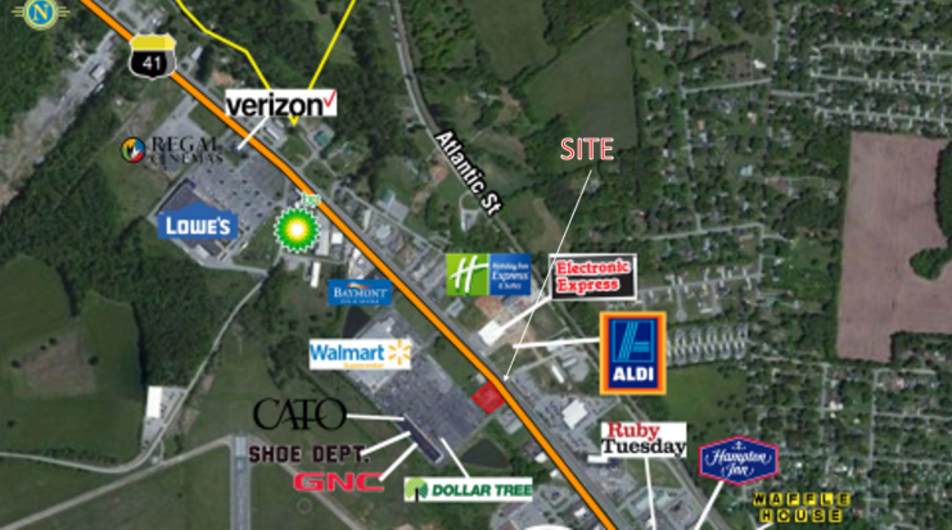 - Retailers include: Walmart Supercenter, Red Lobster, Applebees, Kroger & Holiday Inn Express