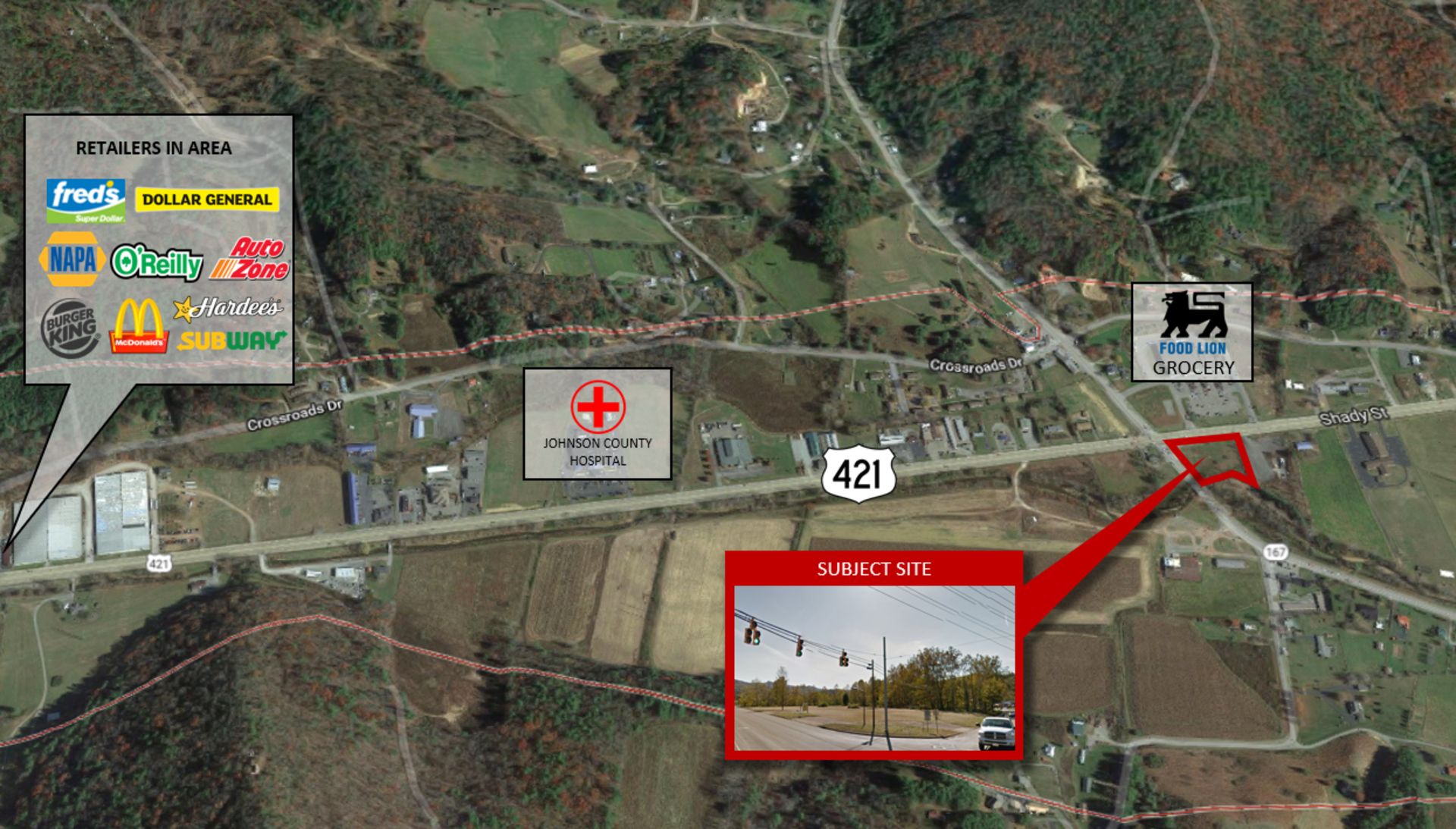 Johnson County Community Hospital is Mt. City's 24-hour emergency hospital that serves the upper Northeast tip of Tennessee and parts of North Carolina and Southwest Virginia and is approximately half a mile from site.