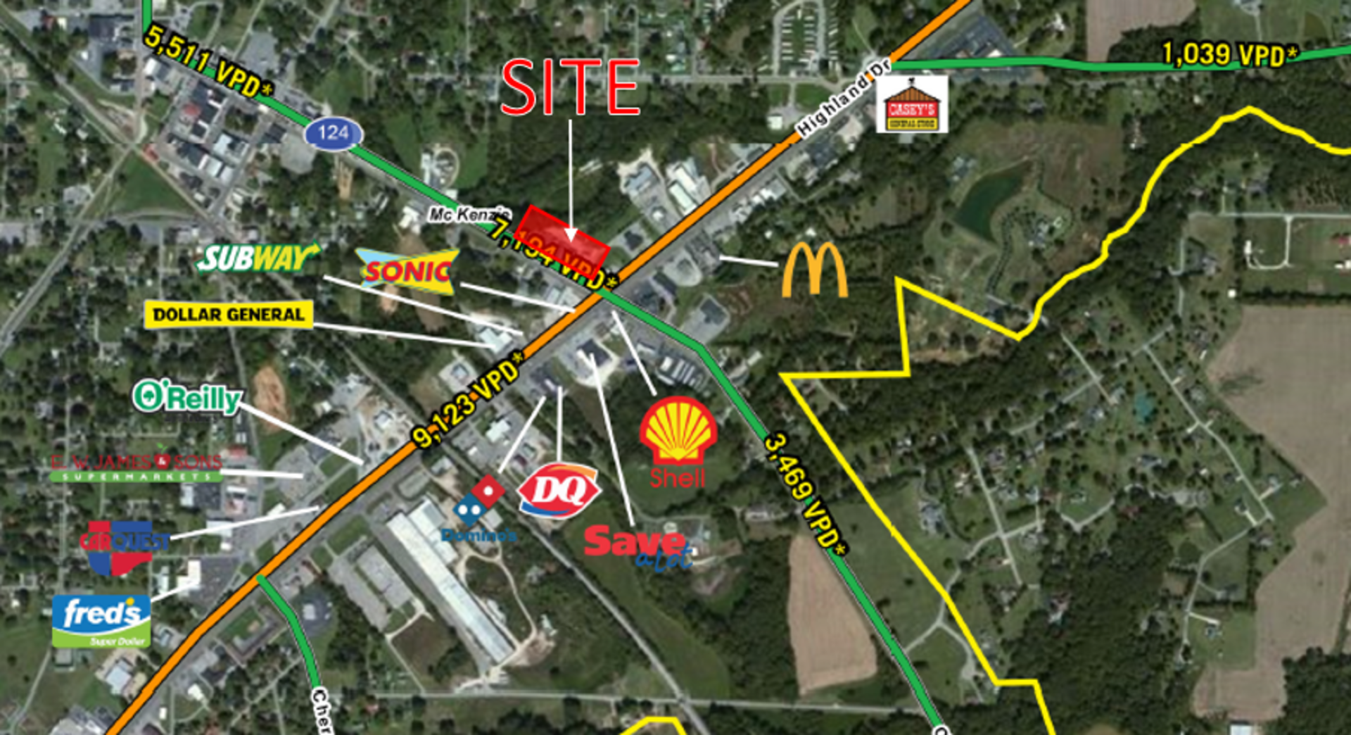 This site is located less than a mile from National Retailers