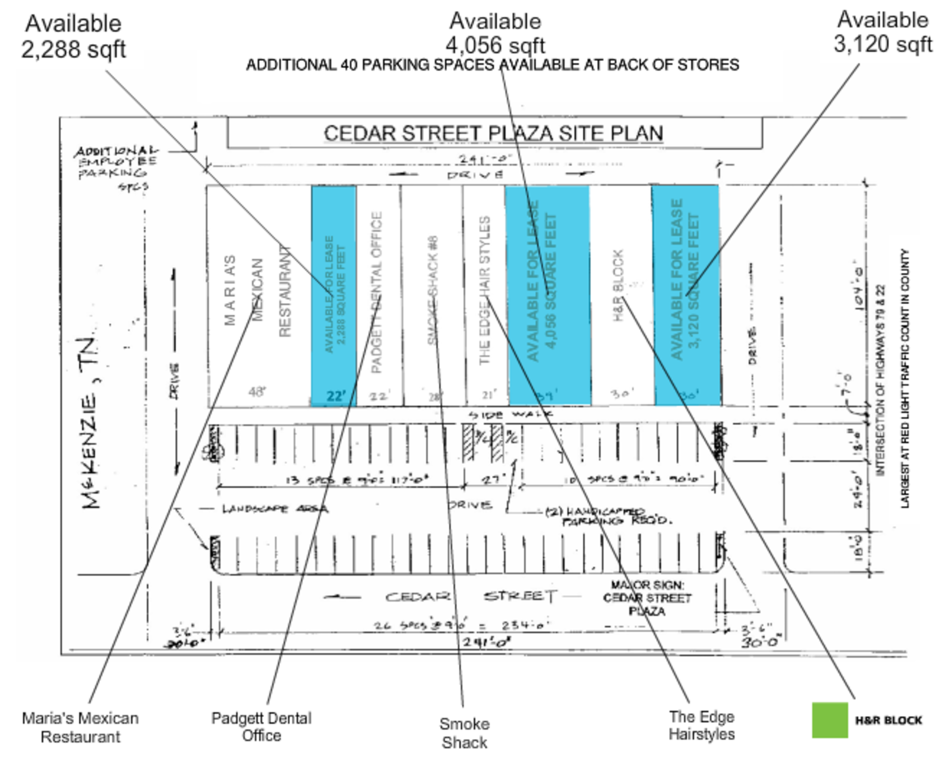 - Additional 40 spaces available in back of store