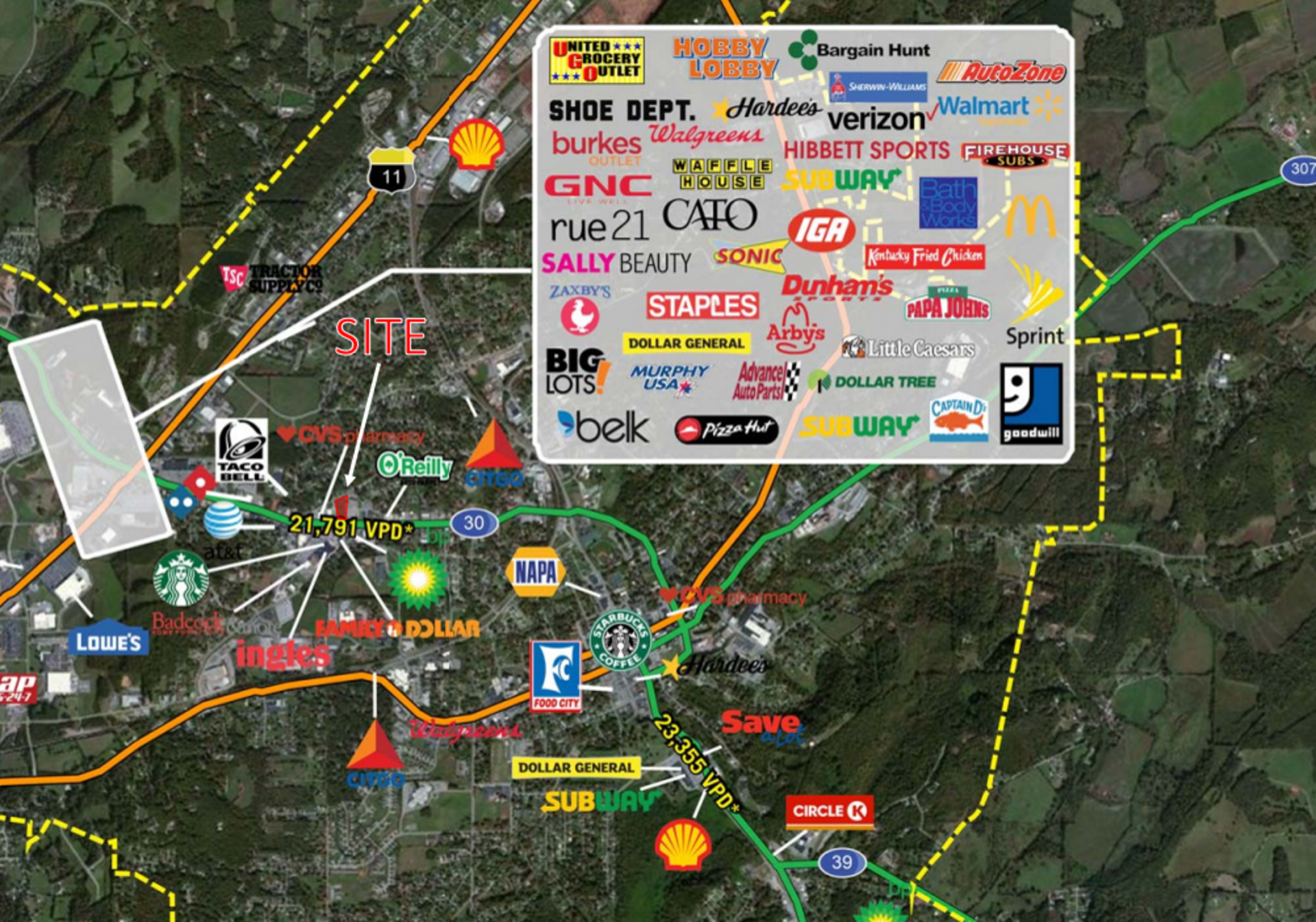 - Retailers Include: Autozone, CVS, Starbucks, & Family Dollar