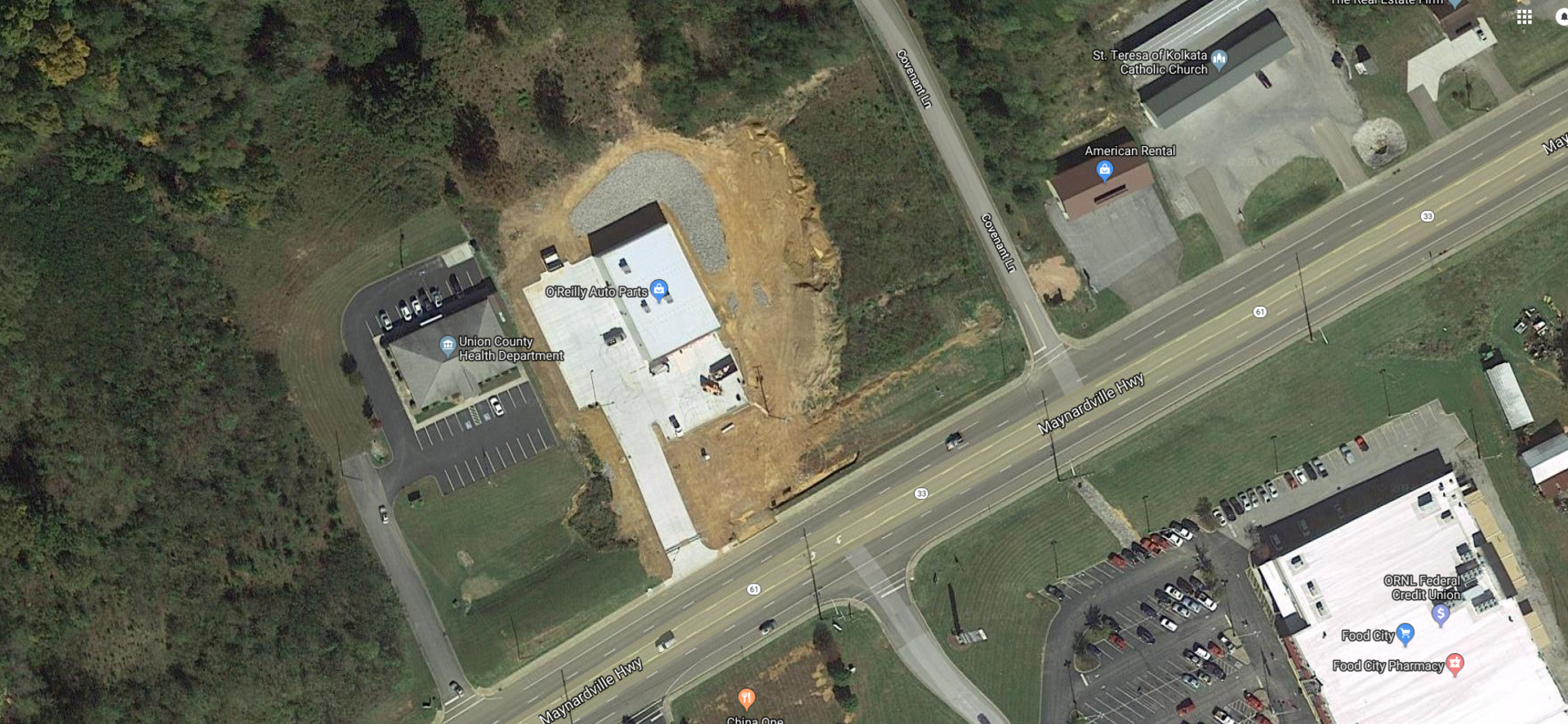 - 1.06 acres of vacant land available adjacent to O'Riley Auto Parts on Maynardville Highway in Maynardville, TN